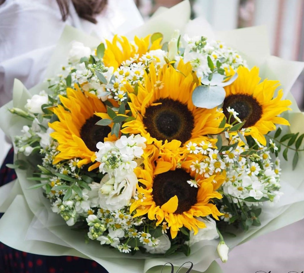 Ярко-желтые цветы олицетворяют солнце, радость и душевное тепло. Букет из подсолнухов также символизирует верность, что делает его идеальным подарком для тех, кто близок и дорог вам по духу. Подсолнухи - это не только красивые цветы, но и символ радости и счастья, который украсит любой день.