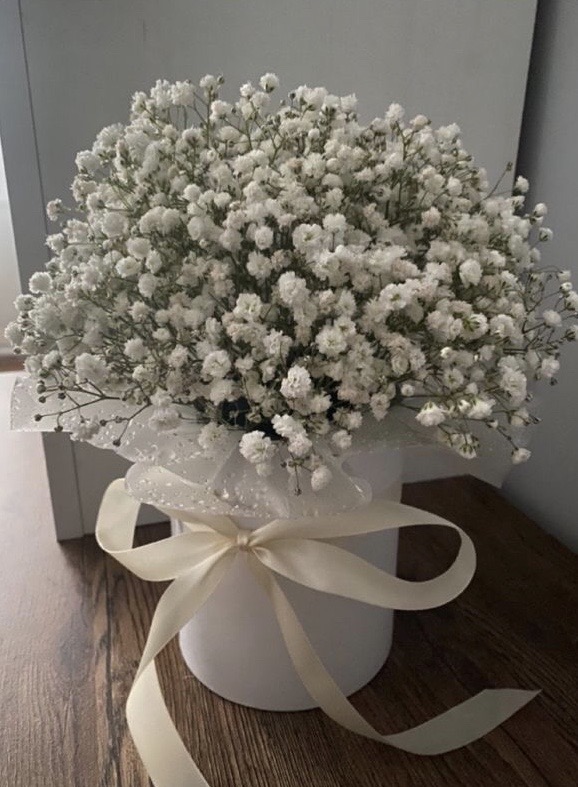 Белоснежная гиспофила, прекрасно подобранная в одиночный букет, выглядит изящно и свежо. Ее нежные, пушистые цветки создают впечатление легкости и воздушности, а белый цвет символизирует чистоту и невинность.