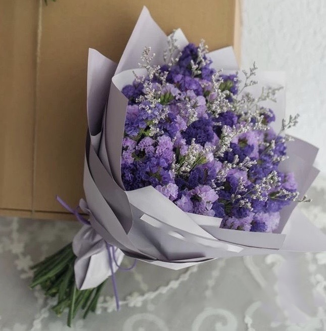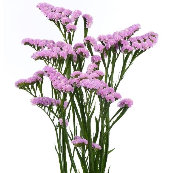 Статица, также известная как "морская лаванда", имеет длинные, стройные стебли и маленькие цветки, собранные в плотные соцветия.